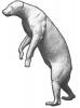 vzpímeně stojící, zavřená tlama, zvednutá tlapa |